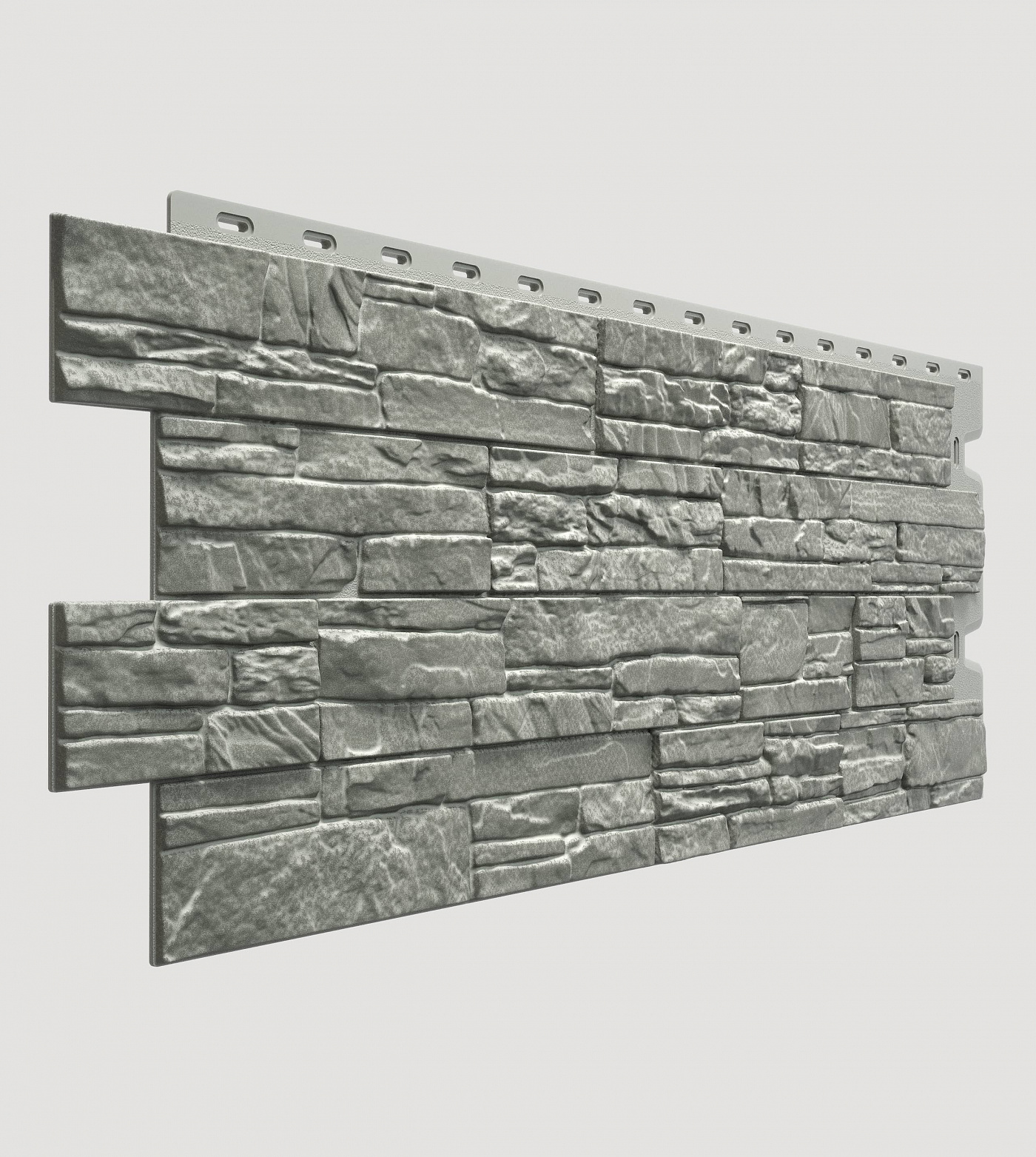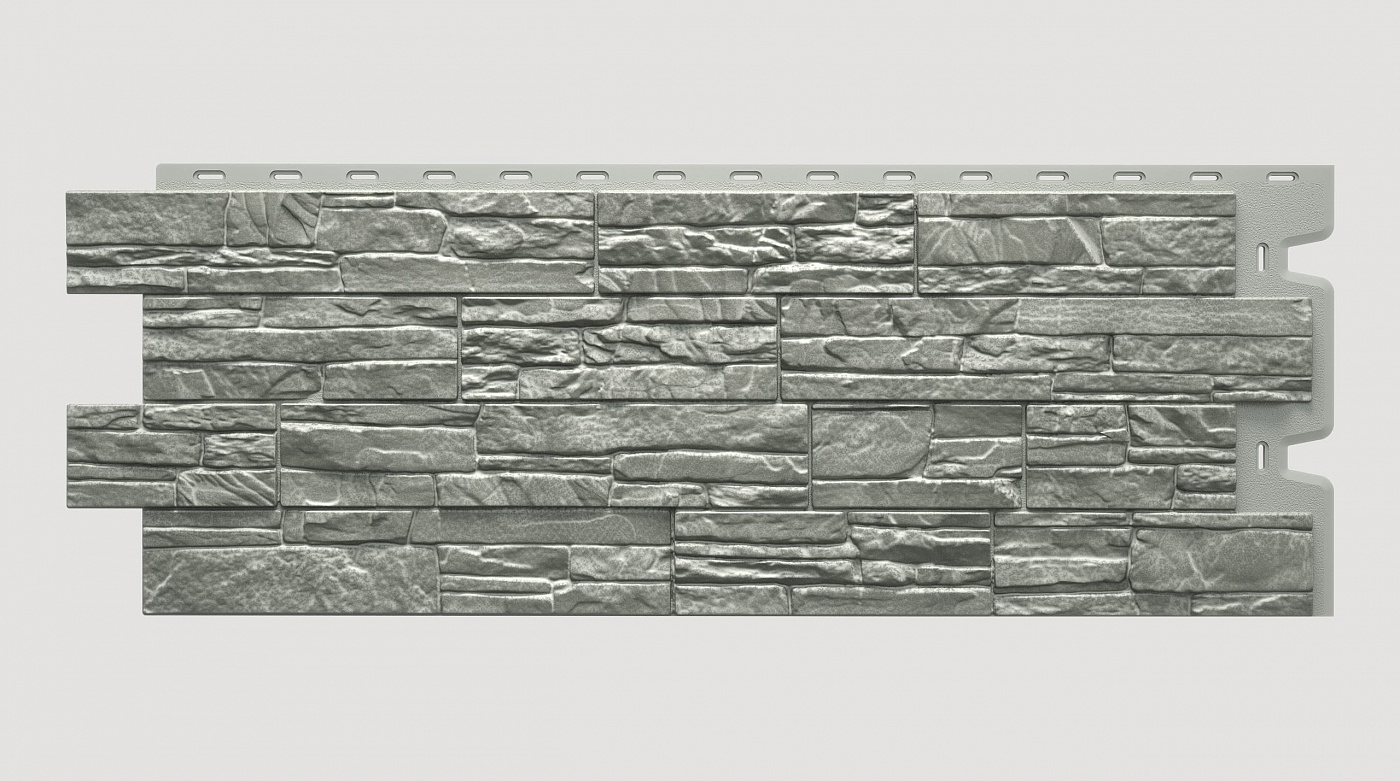 Предлагаемый Вам интересный и неординарный серый цвет Базальт имеет светло-коричневый подтон и элегантный серебристый перелив. Этот необычный оттенок напоминает хамелеона, который, в зависимости от окружающей его обстановки и сочетаний цвета, способен меняться от холодного к теплому оттенку. Как самостоятельный цвет, несет в себе строгость и грацию, а в сочетании с другими цветами способен выигрышно показать и украсить их. За счет плавного перехода разнообразных серо-коричневых оттенков, искусственных сколов и неровностей по камню, на панели образуется рельефный рисунок, который создает полную иллюзию натуральности материала, а именно природного слоистого песчаника, с его роскошной и неповторимой текстурой.