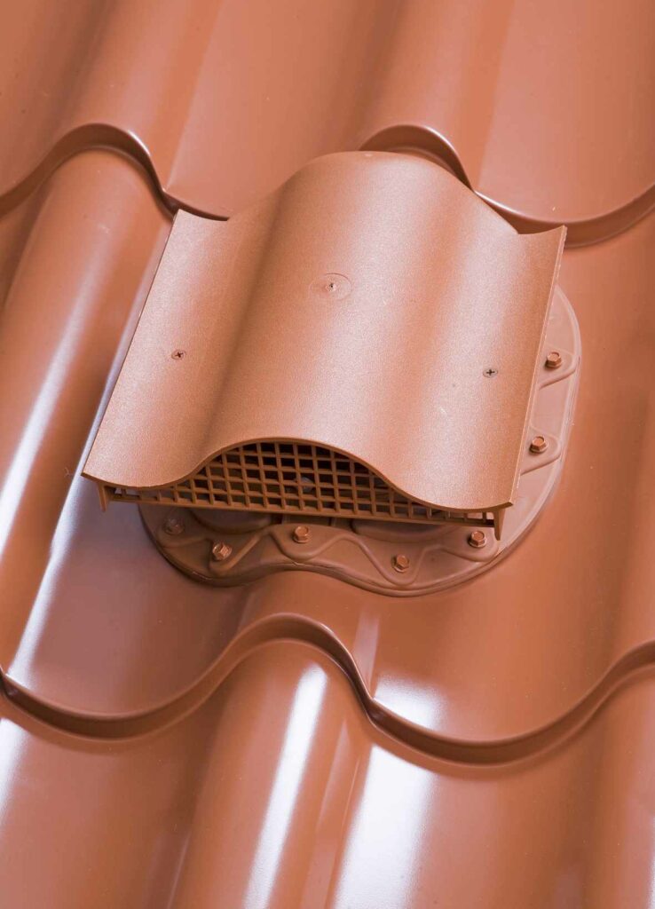 Кровельный аэратор VILPE Muotokate KTV может устанавливаться как при монтаже кровли, так и на уже готовую черепицу.